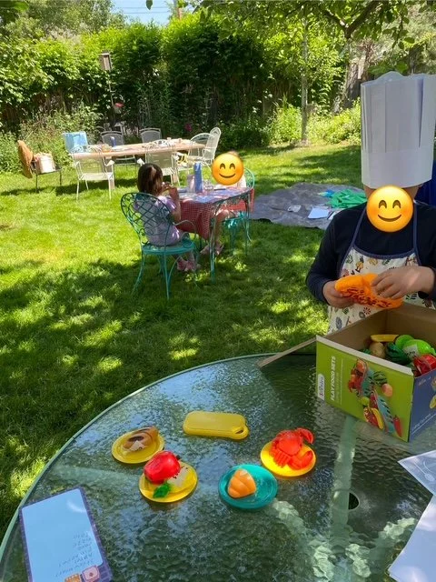 The second week will focus on the theme of food, meal preparation, and eating. We will learn about French cuisine, shopping for food, using money (euros), and preparing a meal. While our camp is not equipped to cook, we will take part in experiential activities such as a “play market” or “play restaurant” where we will take turns being the customer and/or seller/waiter with play money and play food. We will learn verbal expressions and cultural etiquette on this theme. We will engage in thematically appropriate games, songs, and outdoor activities that are fun and require our bodies to move!